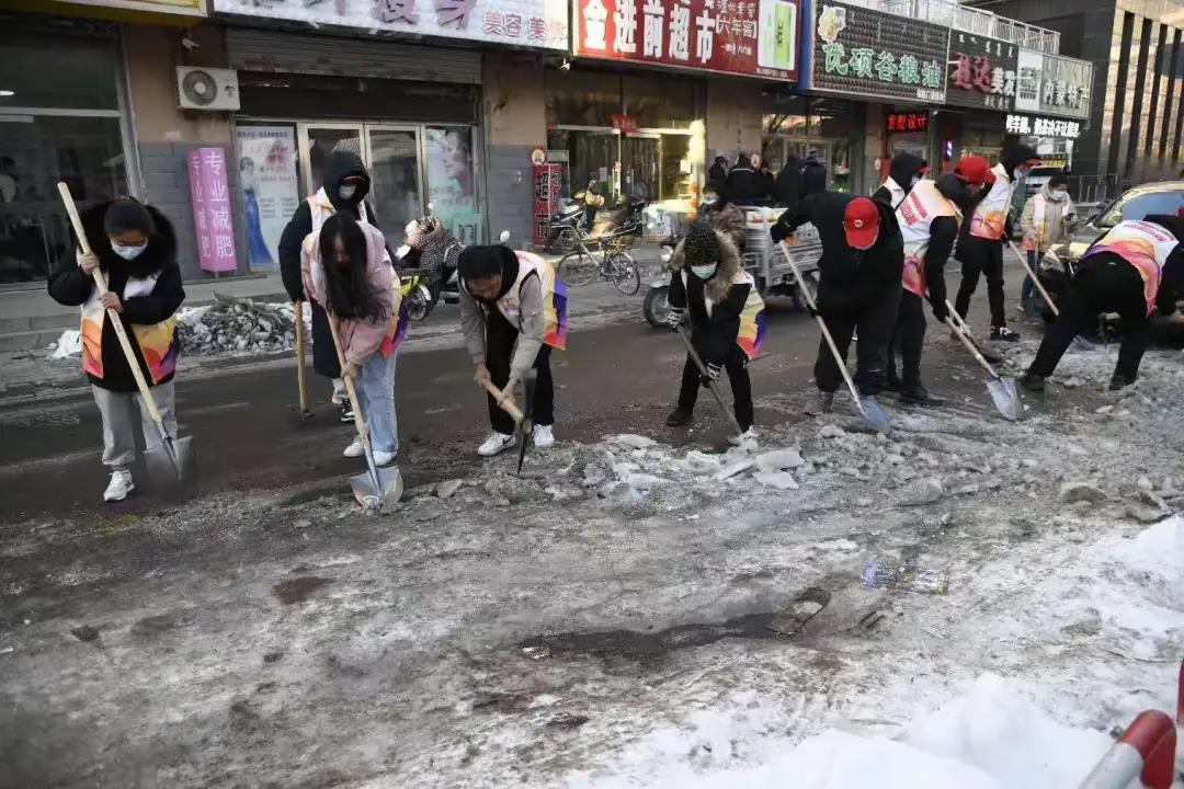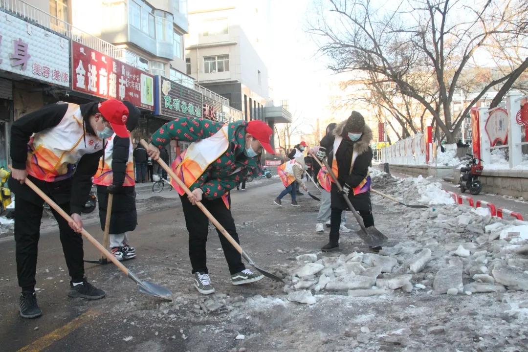 首页 » 工作动态 我院学生前往昭乌达社区 开展清雪活动 发布日期:2020-12-22 来源: 12月9日下午,我院学生党员及入党积极分子前往昭乌达社区,与我院合作共建党支部开展党建融合活动,对社区路面积雪进行了清扫。扫雪过程中,志愿者们干劲十足,不顾天寒路滑,分工明确,配合默契,有的负责铲雪,有的负责清运,呈现出一派热火朝天的场景。大家忙碌的身影在冬天早晨凛冽的寒风中构成了一道亮丽的风景线清雪过程持续近两个小时,经过大家的努力奋战,原本布满积雪的地面已被基本清扫干净,确保了车辆行人的交通安全。物理与智能制造工程学院2020年12月10日