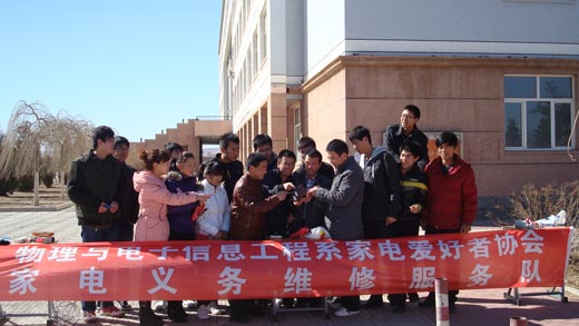为了更好服务全校师生,体现家电爱协”免费为全校师生维修“的宗旨,我协会于2011年月3月16日在综合楼东侧举行了”免费服务全校师生“校内大型义务维修活动.我协会技能部人员以熟练的维修技能与热情的服务态度为广大师生