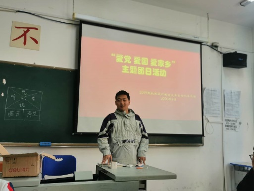 9 月24 日,“ 爱国爱党爱家乡” 于我系19 级开展。此次活动鼓励广大同学努力学习、茁壮成长,涵养爱党爱国爱家乡的情怀,立志成为未来发展的建设者和接班人。
