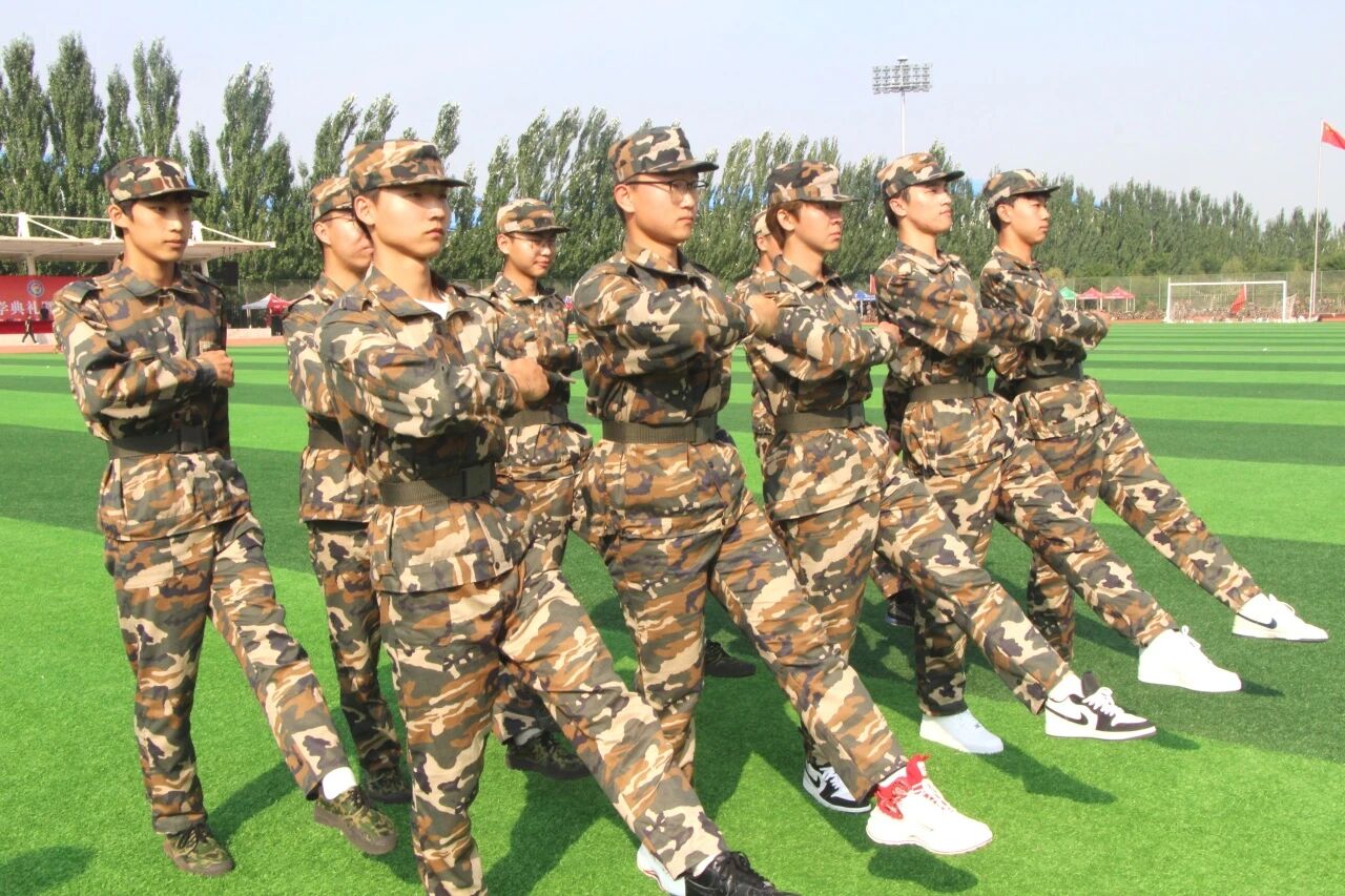 军训汇演时,同学们步伐整齐、斗志昂扬,以铿锵的姿态和凝聚的力量,充分彰显了新一代学子坚韧不拔、奋发向上的精神风貌。