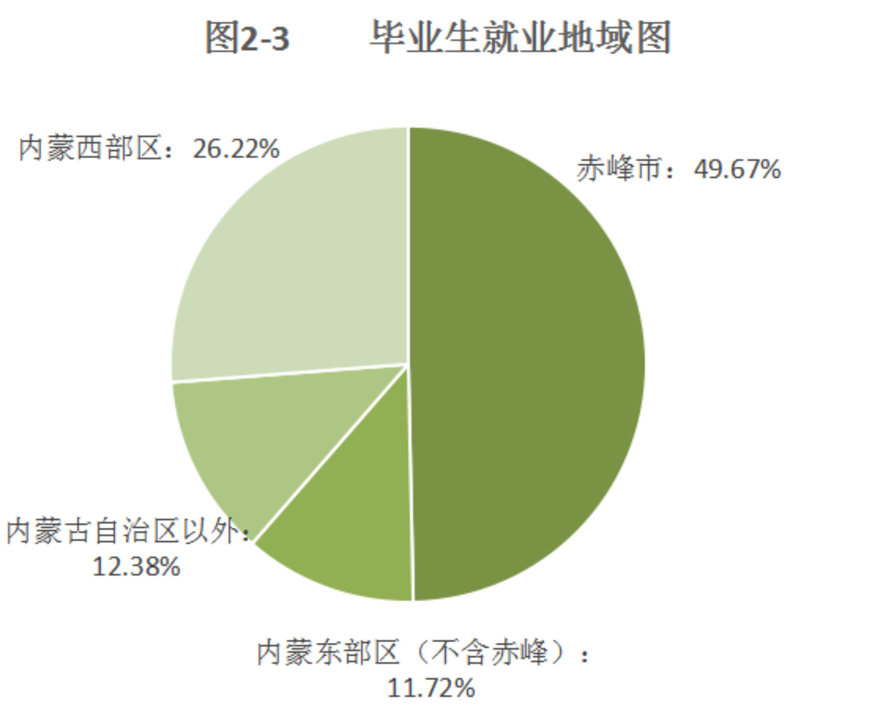 (2)按照就业地域分析,beat365毕业生就业地域分布于全国27个省、自治区、直辖市。区内就业人数排在前三位的依次是赤峰市、呼和浩特市、通辽市,其中以赤峰市就业人数最多。原因是赤峰市生源数量最多,选择回到生源地就业的毕业生占大多数。另外,随着赤峰市经济社会的快速发展,赤峰市也成为很多非本地生源毕业生就业的首选。区外就业的学生多集中在北京、天津、河北、山东等省市,区外生源的毕业生也多选择回生源地就业,也有部分区内生源毕业生选择到北京、上海、浙江等区外经济发达省市就业,具体情况见图2-3和表2-9。