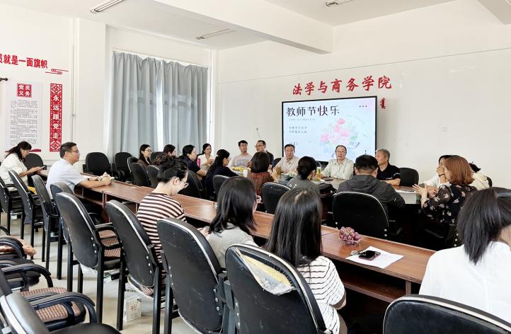 法学与商务学院召开了教师节主题座谈会,与会教师回顾了从教经历,分享了教育经验,讲述了教书育人感受,并围绕教育心得、人才培养、教学项目实施与发展、学科改革与建设等内容进行了座谈交流,为推动学院高质量发展提出了中肯的意见与建议。