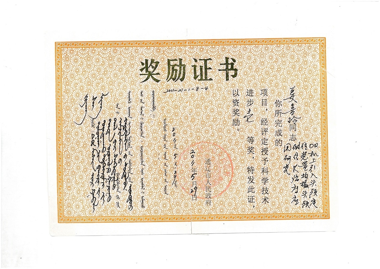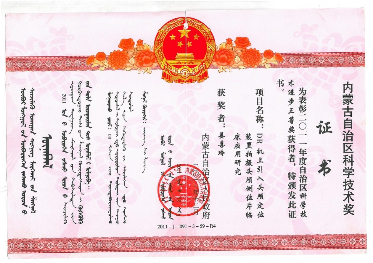 5. 内蒙古自治区科学技术进步三等奖