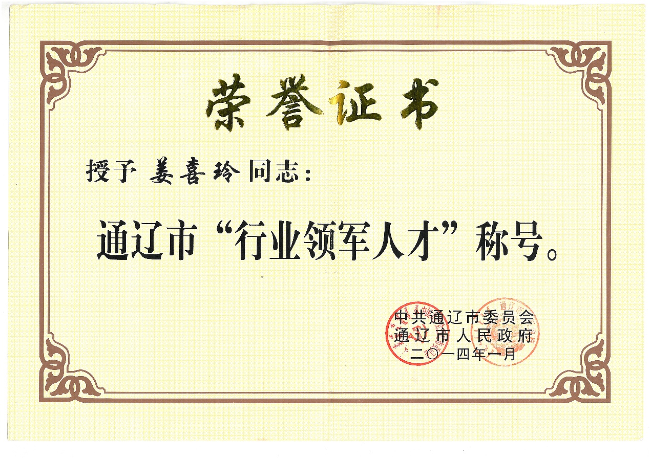 8. 通辽市“行业领军人才”称号