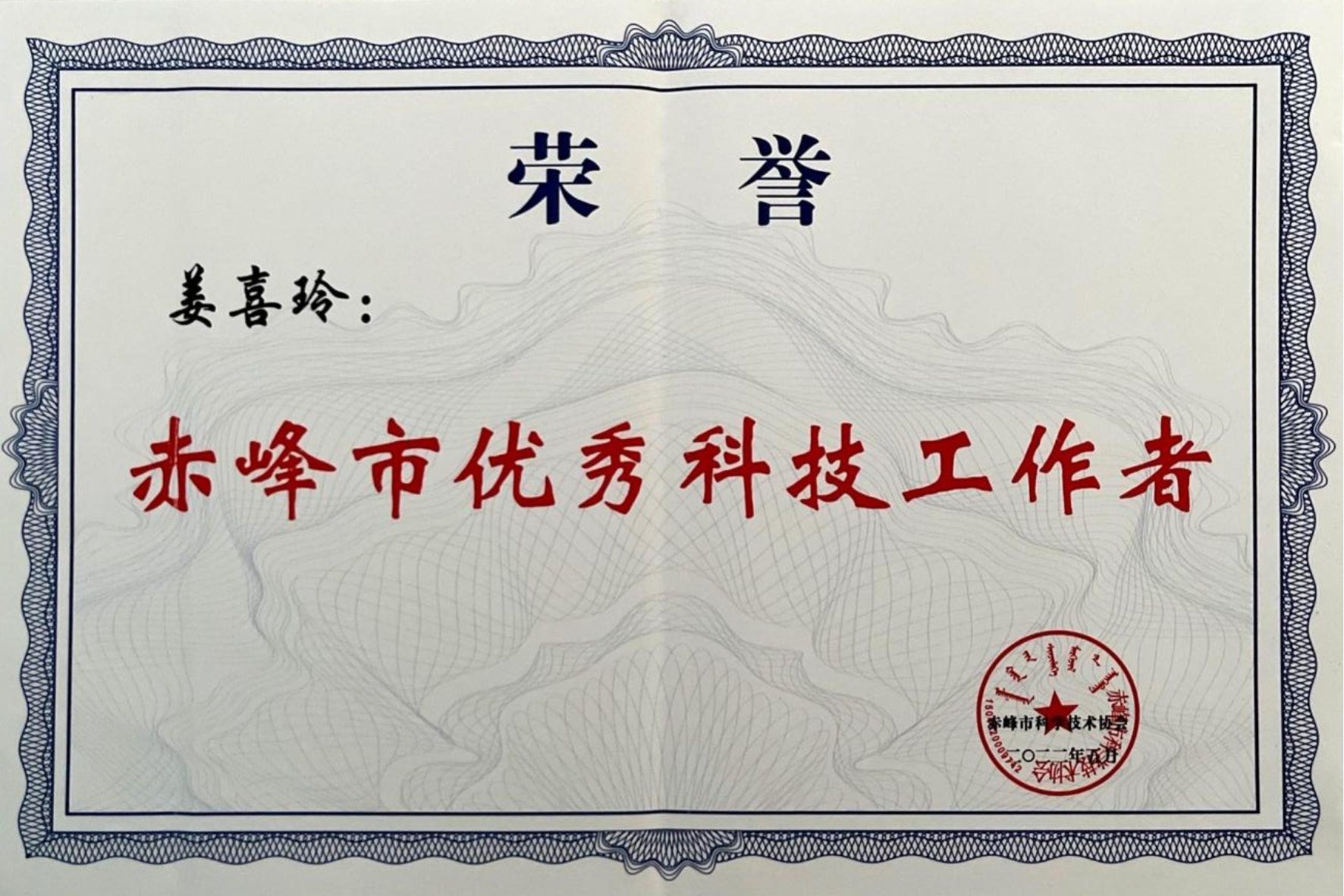 4. 赤峰市优秀科技工作者
