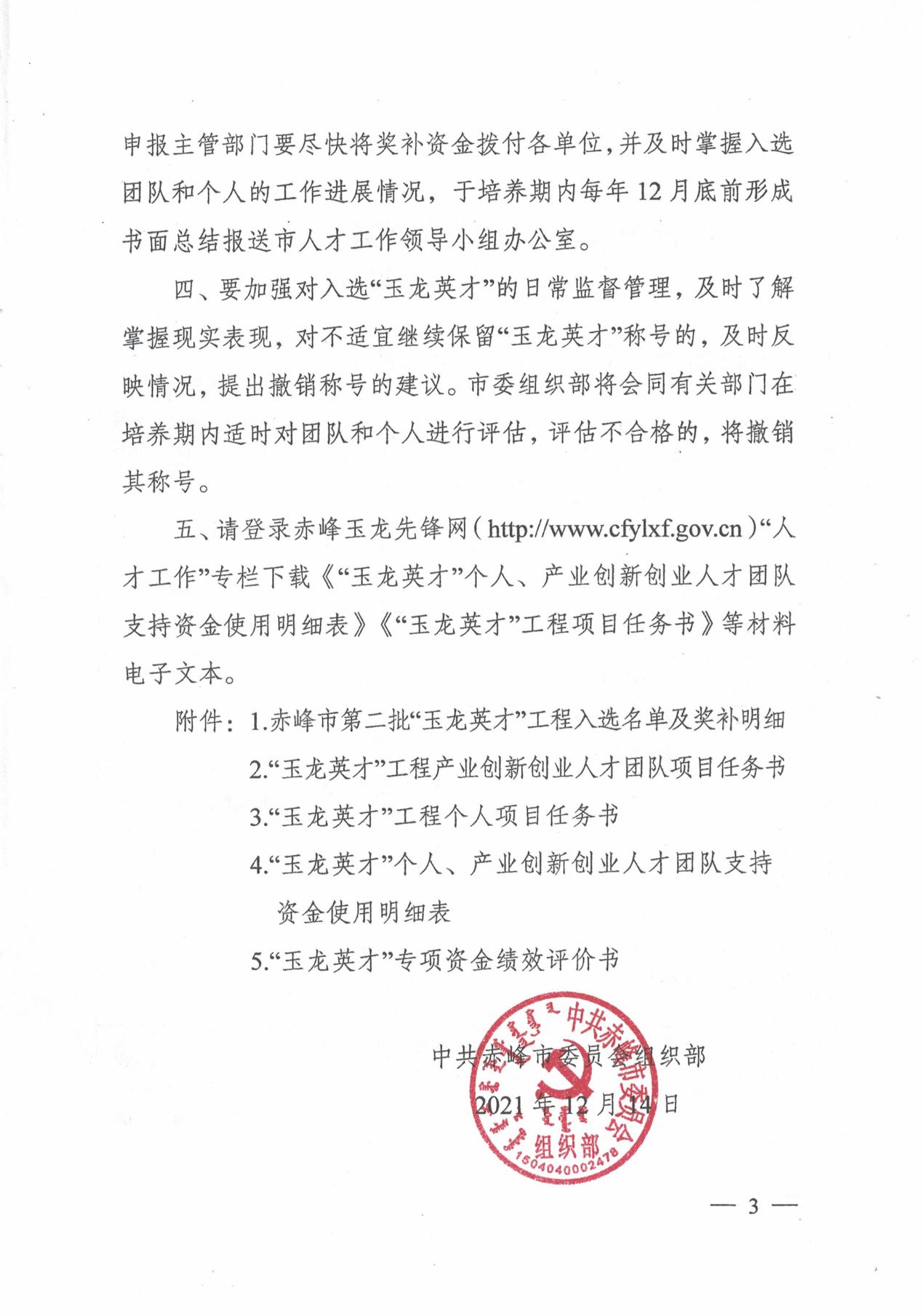 3. 赤峰市“玉龙英才”