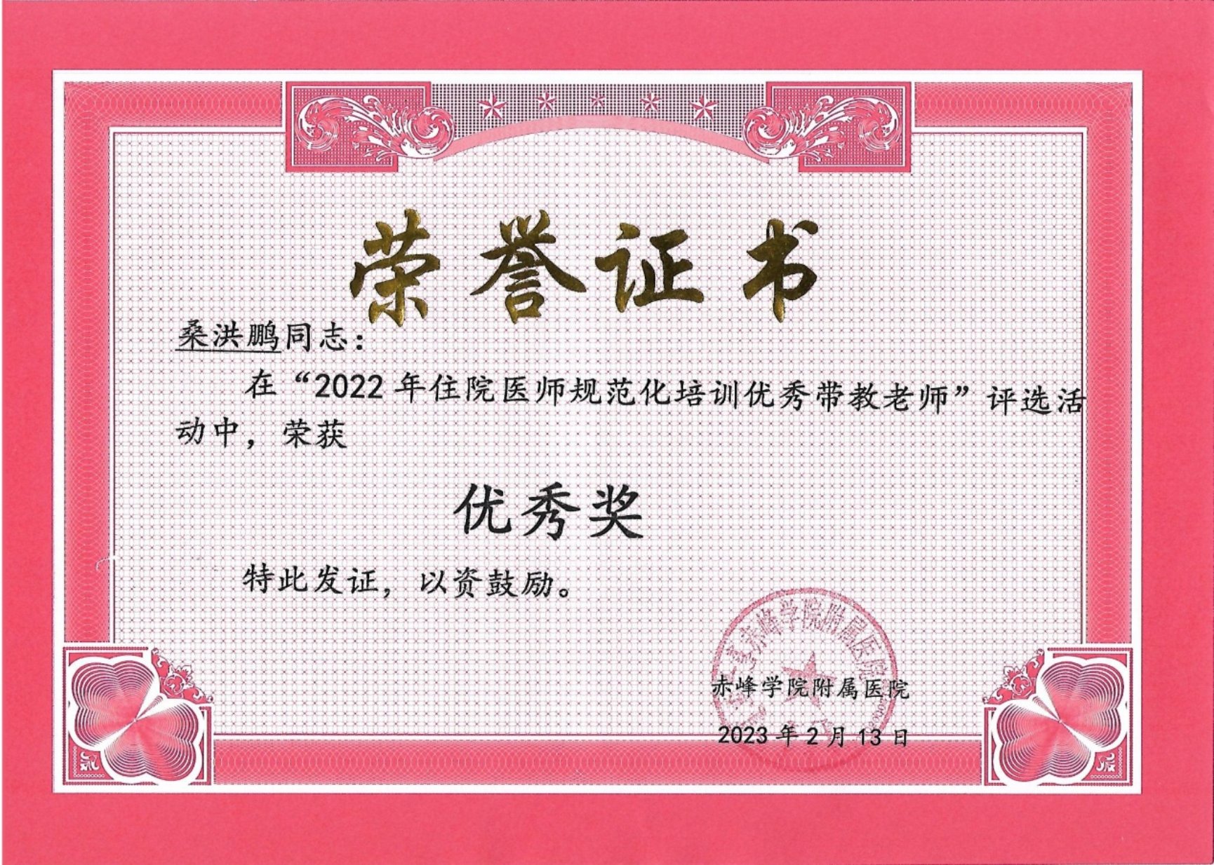 教育教学 教师服务 首页 > 教育教学 > 创建优良教风、争做优秀教师-桑洪鹏 | 来源: 更新时间:2023-09-28 Beat365|官方网站创建优良教风、争做优秀教师 姓名:桑洪鹏专业:外科学(骨外)、脊柱外科职称:副主任医师获奖证书