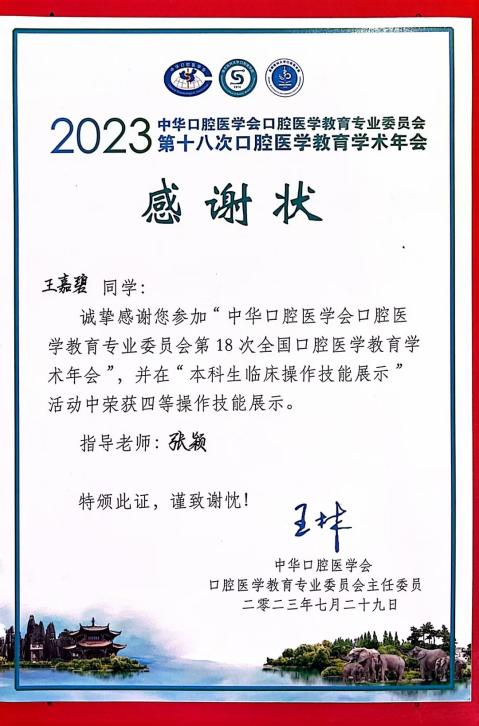 教育教学 教师服务 首页 > 教育教学 > 创建优良教风、争做优秀教师-张颖 | 来源: 更新时间:2023-09-19 Beat365|官方网站创建优良教风、争做优秀教师 姓名:张颖专业:口腔医学职称:副主任医师、副教授获奖证书