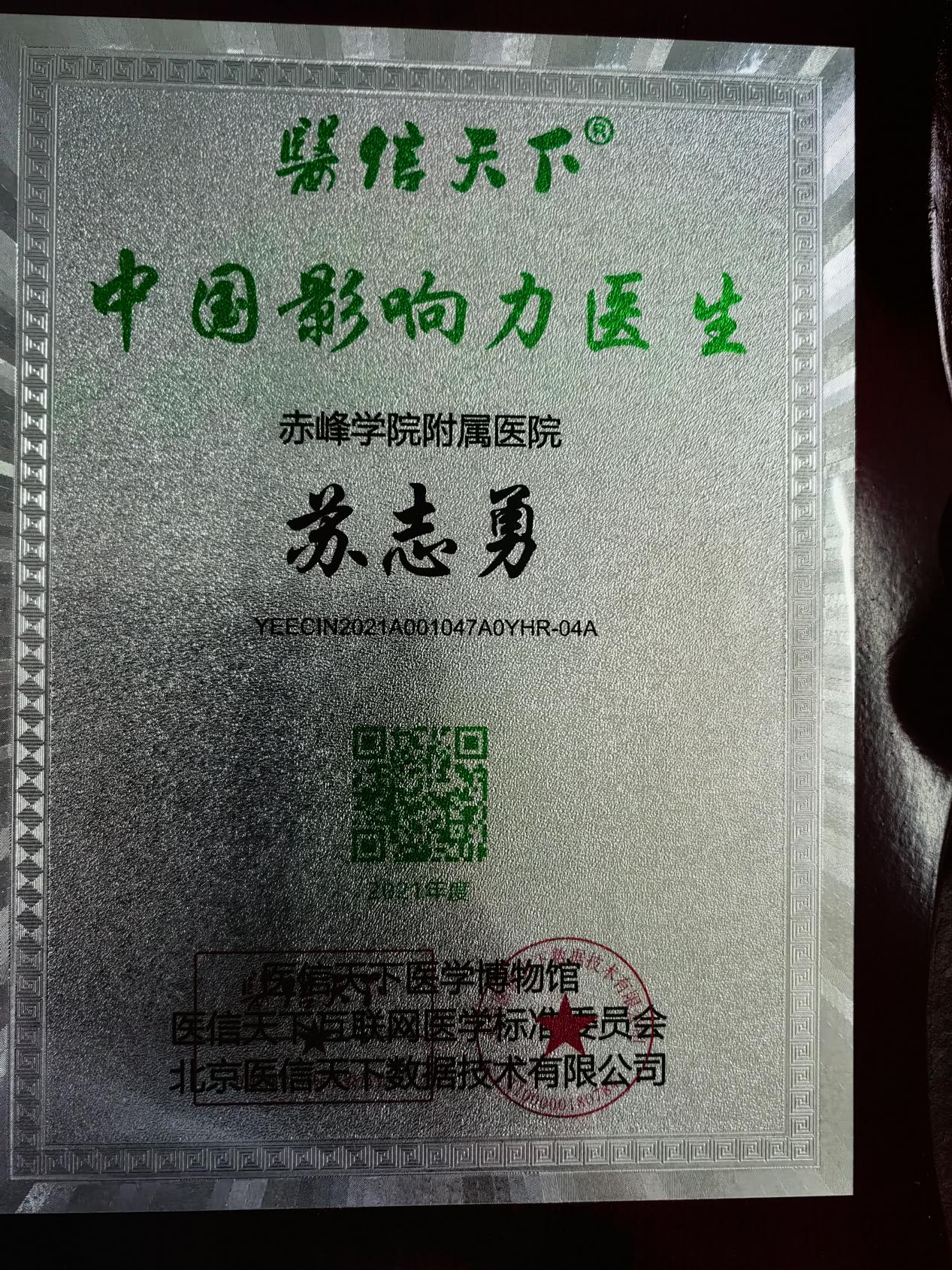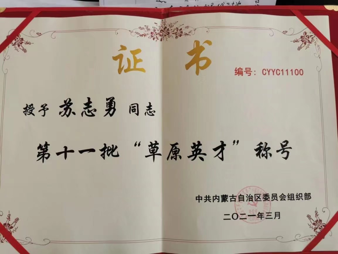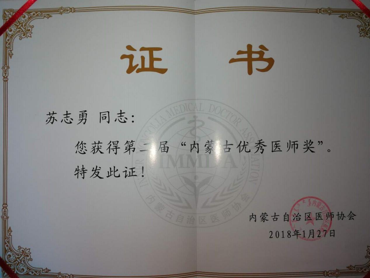 2018年获得“第二届内蒙古优秀医师奖”