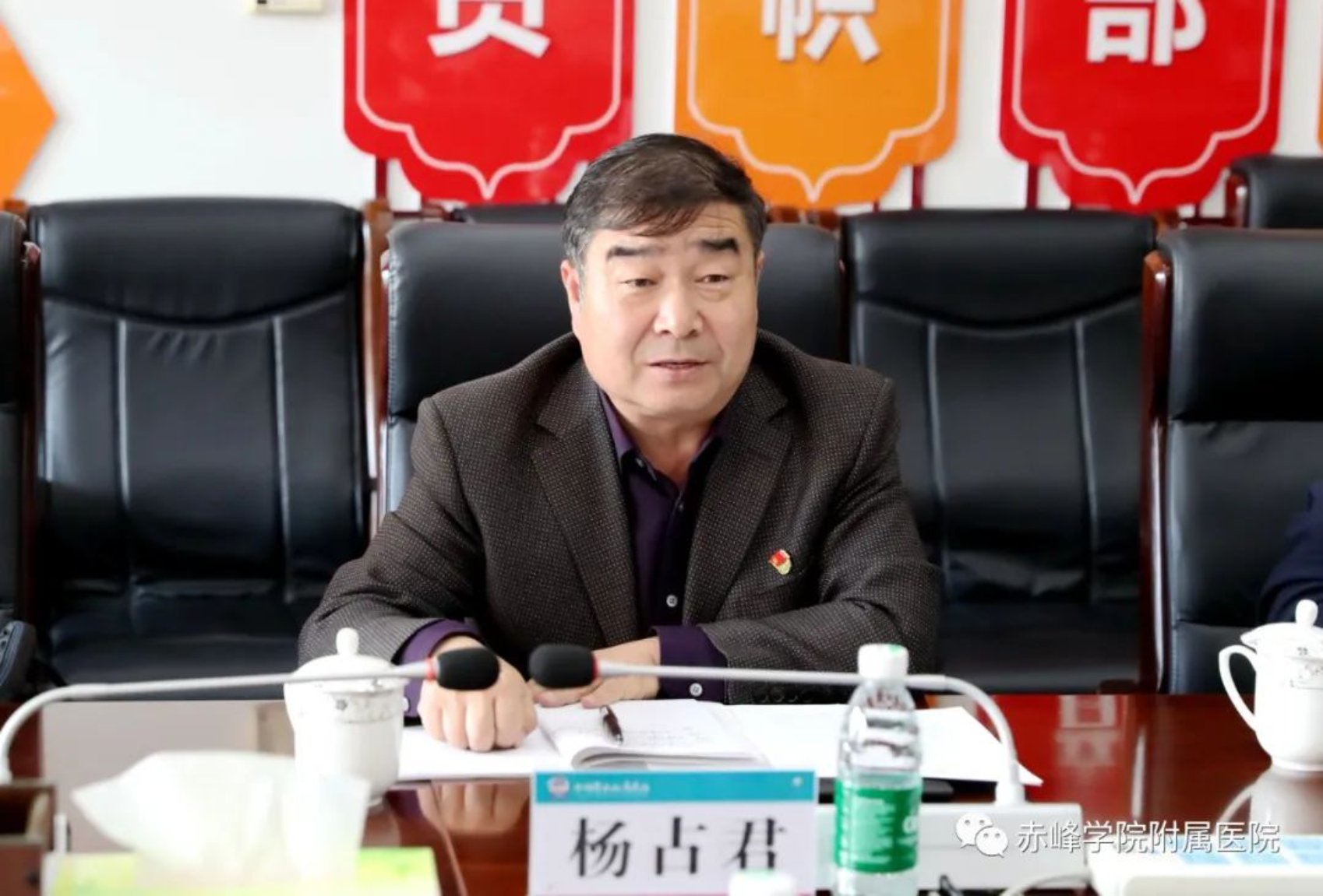 杨占君副校长听取了医院党委书记李占则关于主题教育开展情况的汇报,充分肯定了附属医院主题教育工作取得的成效,指出附属医院在学校临床医学、口腔医学等医学板块教育中发挥了重要的支撑作用,为学校深化医教协同,推进医学教育改革与发展做出了突出贡献。杨占君副校长强调,要继续加强对主题教育的组织领导,强化责任落实,注重宣传引导,一体化推进理论学习、调查研究、推动发展、检视整改、建章立制五项措施,坚持问题导向和效果导向,切实解决制约医院高质量发展难题和全院干部职工、广大患者急难愁盼问题。
