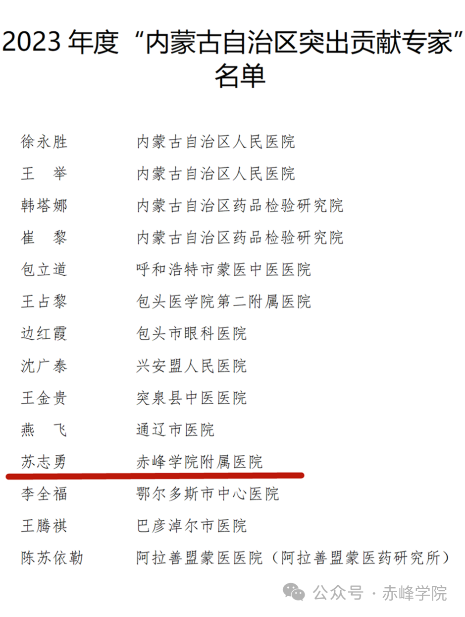 喜报|医学部苏志勇教授被评为“内蒙古自治区突出贡献专家”