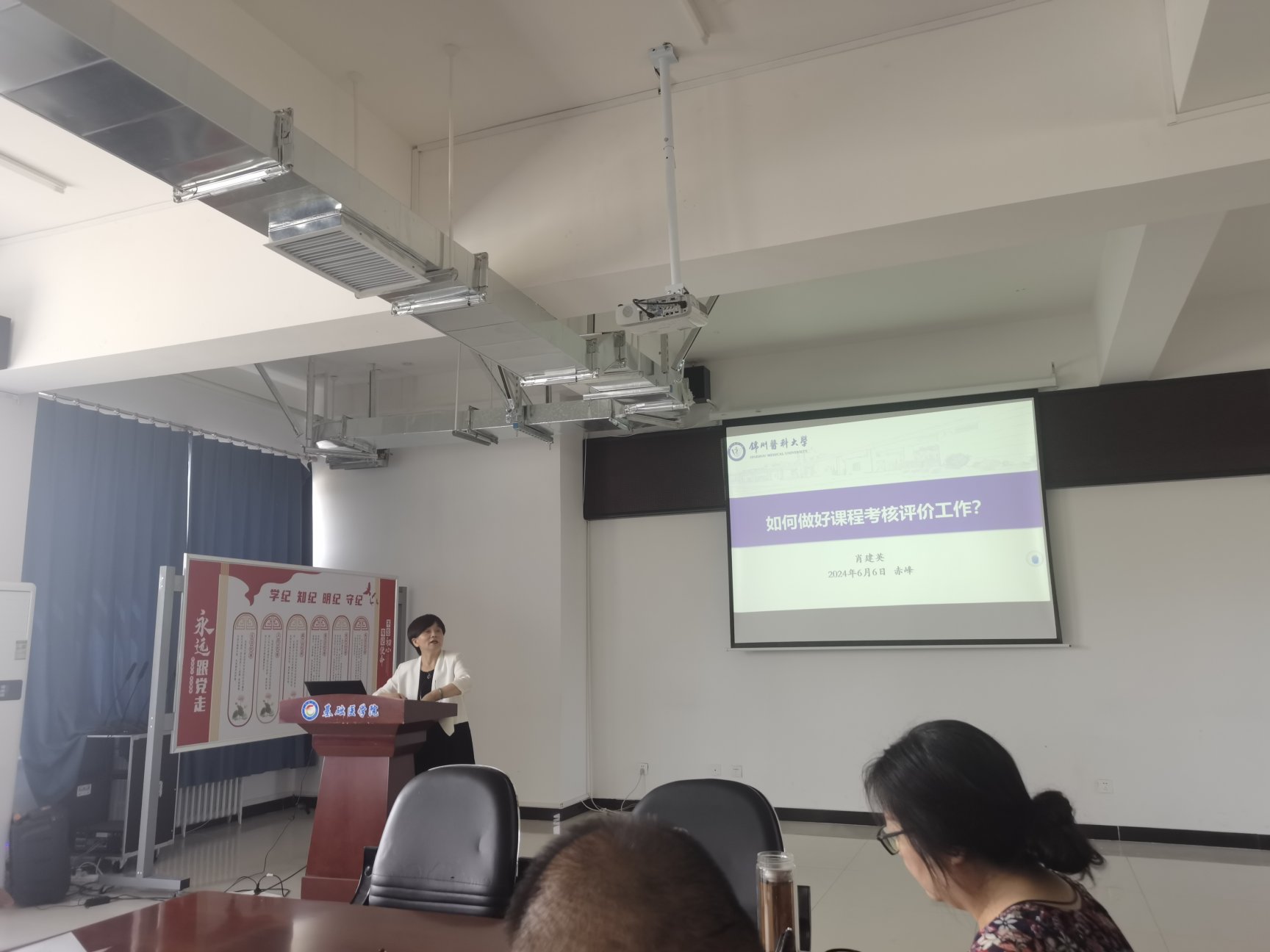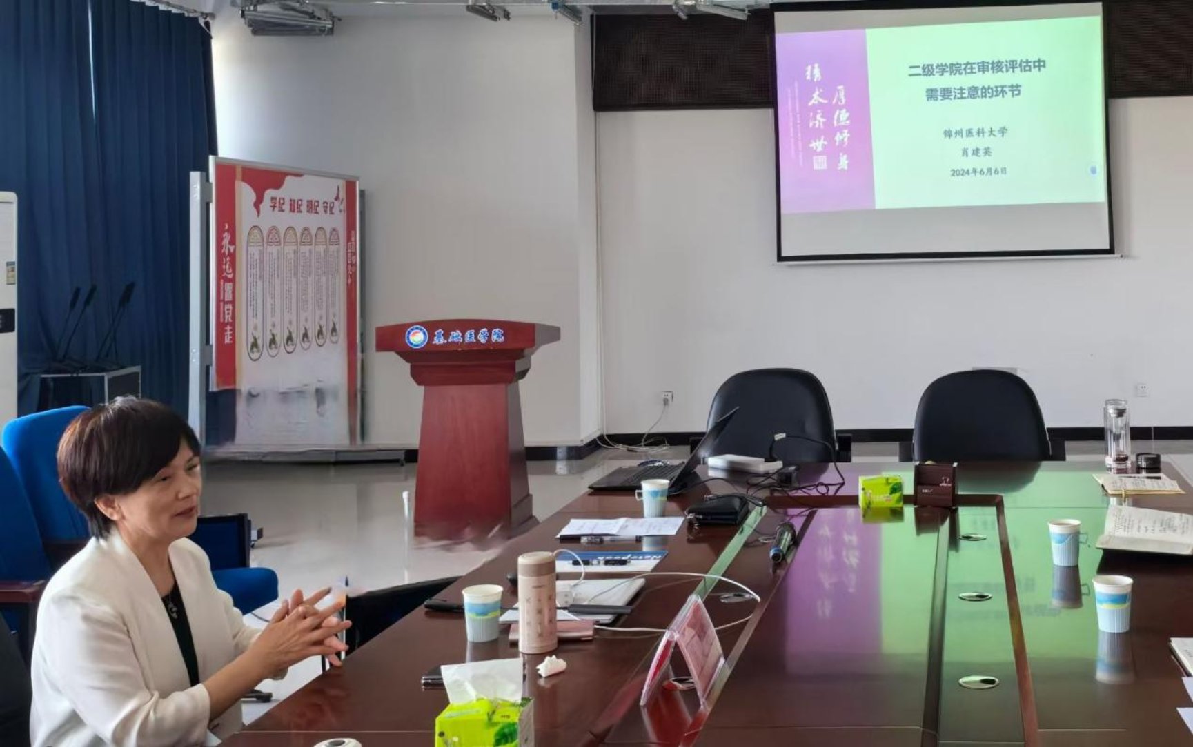 在主题论坛环节,来自锦州医科大学的教育部临床医学专业认证和本科教育教学审核评估专家肖建英教授,和现场医学教师分享了考核评价、审核评估、教学督导等方面的宝贵经验和做法。与会者就教学过程中的疑虑和难点展开了热烈的讨论和交流。另外,在基础医学院、临床医学院的实地走访和查阅材料环节,肖建英教授还就试卷评价分析、课程体系设计、人才培养方案修订等方面进行了现场指导。