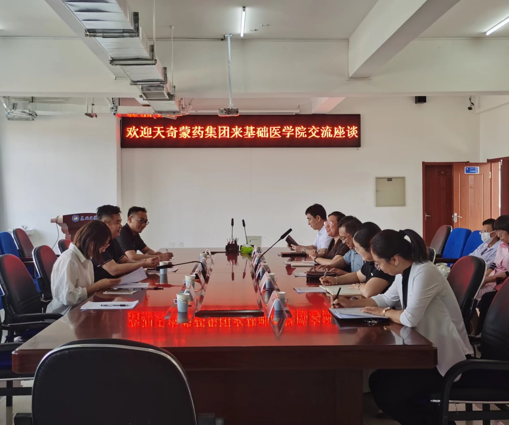 6月6日,应医学部邀请,天奇蒙药集团执行总裁韩风雨一行到医学部就科研合作、成果转化、毕业生就业、学生实习等领域工作进行考察交流。天奇蒙药集团知识产权总监、研究院院长、部门经理随同考察。医学部常务副主任张俊毅主持交流座谈会。
