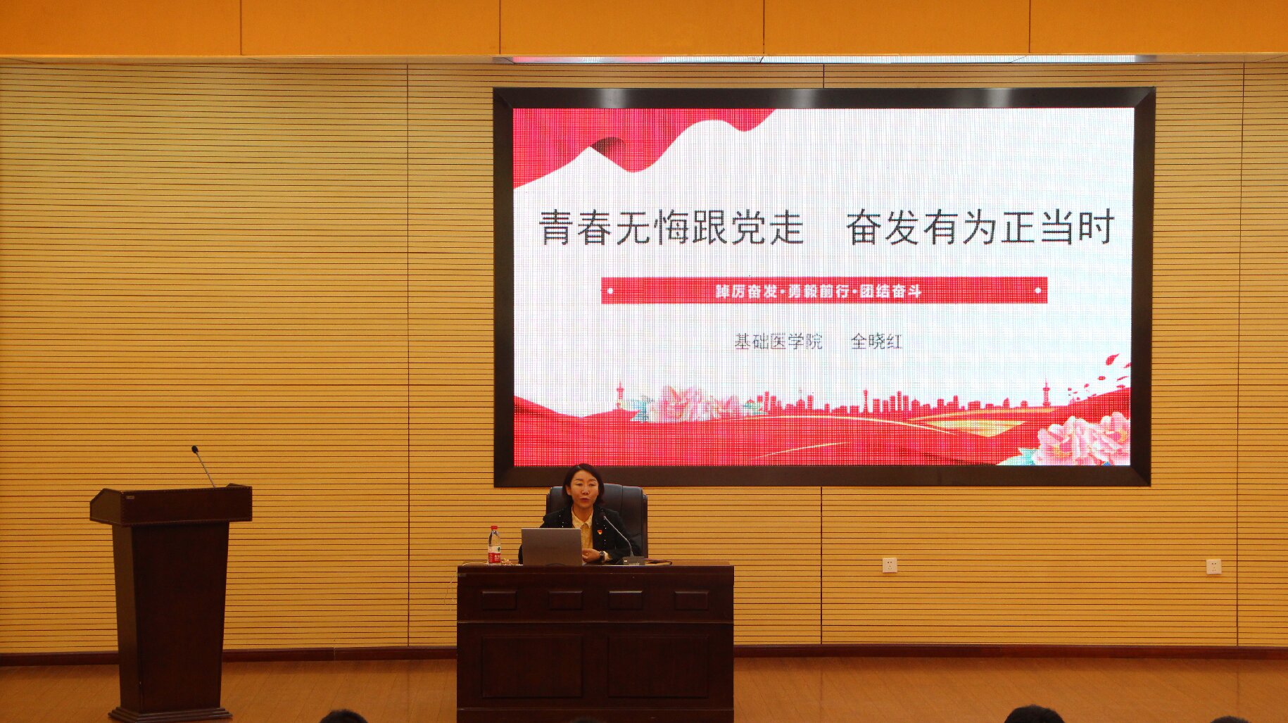 3月17日晚,基础医学院在博物馆学术报告厅举办了思政大讲堂专题讲座,主讲人为基础医学院党总支书记全晓红,基础医学院党总支副书记朱蕾、团学办的辅导员老师们以及基础医学院全体同学参加了本次讲座。