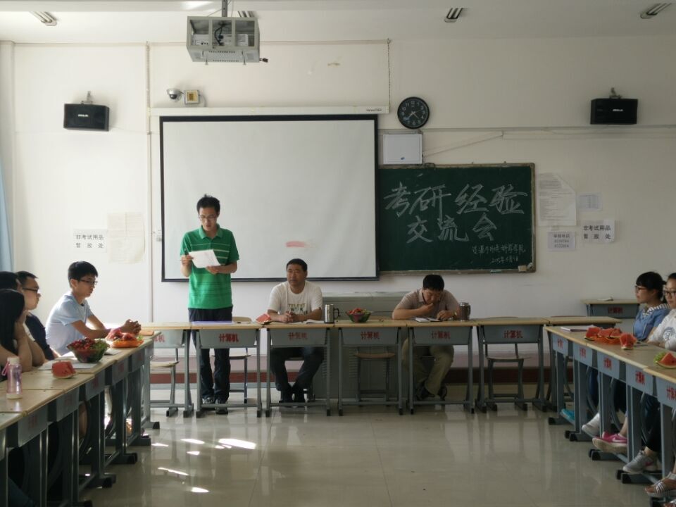 交流会上,各位同学介绍自己的考研方法跟技巧经验,主要以稳抓学习为主,正确选择专业为辅,注意考试时间等等展开。通过对基础知识的熟悉运用与历年习题的系统练习,对考试的重点难点进行一把抓式的掌握,要利用尽可能能利用的时间来学习,强调了考研中几项需要注意与难以掌握的科目,并对其重点难点进行了非常详细的分析。同时强调考研跨专业难度大,如果可以尽量选择与自己相同的专业,要加强自己与考研指导老师的交流,必要的时候指导老师会给自己非常大的帮助。还提醒同学们将自己的生物钟调成考试时间,在固定的时间做什么题,也对考试有很大的帮助。要自信的走向考场,避免紧张情绪影响发挥,遇到非常难的题先扔掉,做有把握的题目,这些都是考验致胜的关键等等。