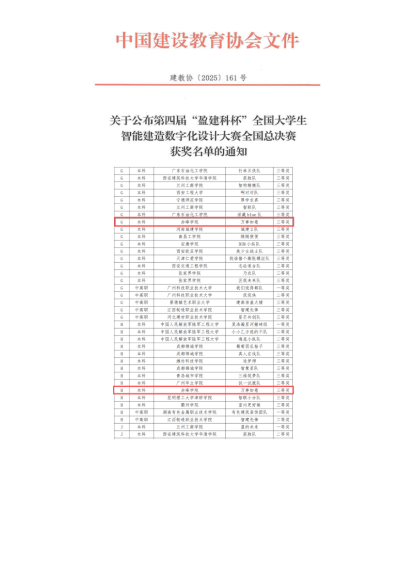 此次获奖充分体现了beat365学子优秀的专业实践能力、团队协作精神与创新意识,也展现了学校在智能建造人才培养中“理论与实践相结合”的育人成效。学校将以赛事为契机,持续深化教学改革,优化人才培养,为行业输送更多高素质应用型人才。