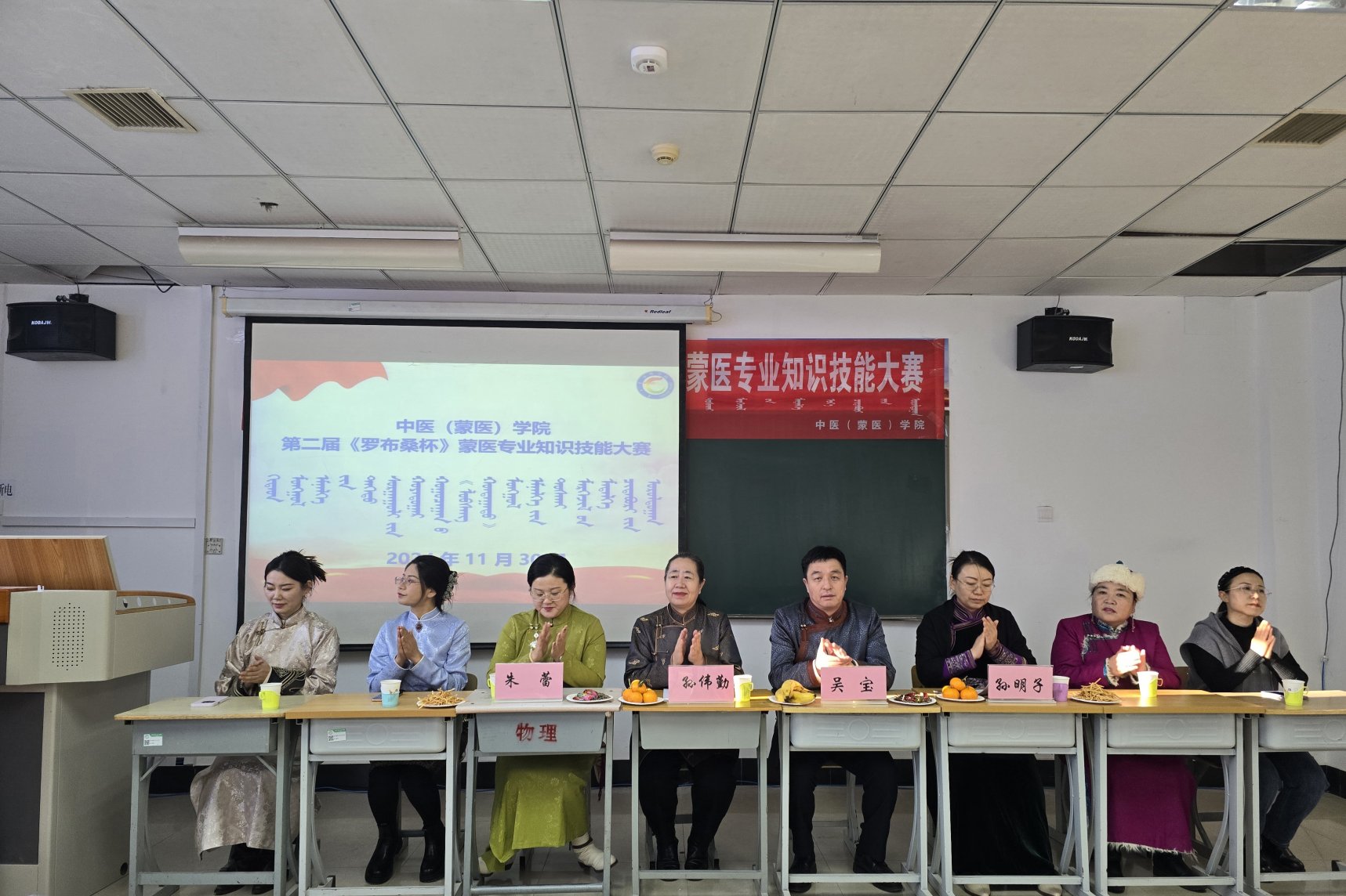 11月30日,中医(蒙医)学院在崇仁楼121教室举办第二届“罗布桑杯”蒙医专业知识大赛。学院领导班子成员、教学办主任、蒙医学教研室主任及部分师生代表到场观看比赛