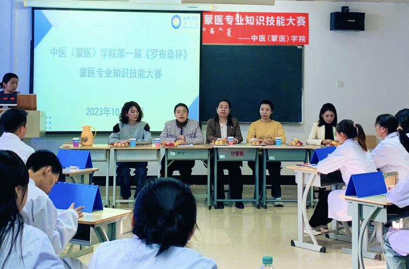 为进一步弘扬中华优秀传统文化,展示蒙医专业教学成果,2023年10月28日,中医(蒙医)学院在崇仁楼121教室举办第一届“罗布桑杯”蒙医专业知识技能大赛。学院领导班子成员、蒙医专业教研室负责人及学生代表观看比赛。