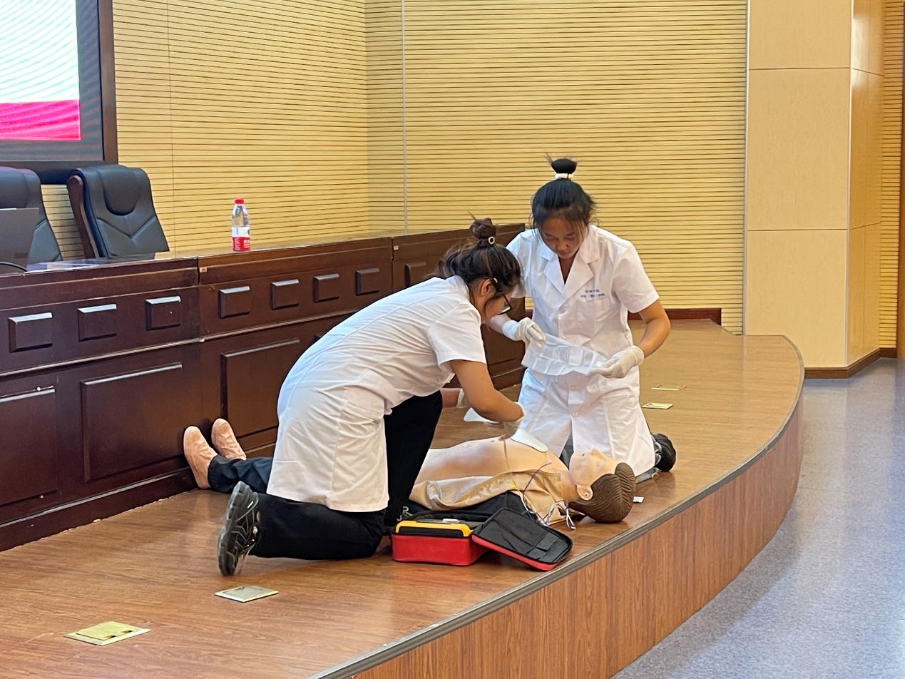 农学院党总支副书记刘汉一为大家示范了灭火器的使用方法,并详细的想全体人员讲解了怎么用灭火器及防火、灭火、报火警和逃生自救的实用性较强的消防安全知识。由自治区级救护讲解员、中医(蒙医)学院团学办副主任白云峰将理论知识与实践相结合,现场演示了心肺复苏 (CPR) 操作过程,并讲解了应急救援过程中的注意事项,此外,还介绍了自动体外除颤器(AED),及使用方法。