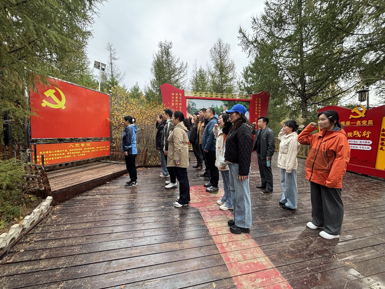 活动中,党员们依次参观了马鞍山林场、生态步道,在观景平台上,面对鲜红的党旗,重温入党誓词,认真聆听当地在生态修复与绿色发展道路上的奋斗历程,大家重温习近平总书记对内蒙古的重要指示精神,深刻领悟“绿水青山就是金山银山”理念的实践意义,不时驻足,细致观察植被恢复与生长状况,亲身感受生态文明建设的丰硕成果,交流对生态保护重要性的认识。
