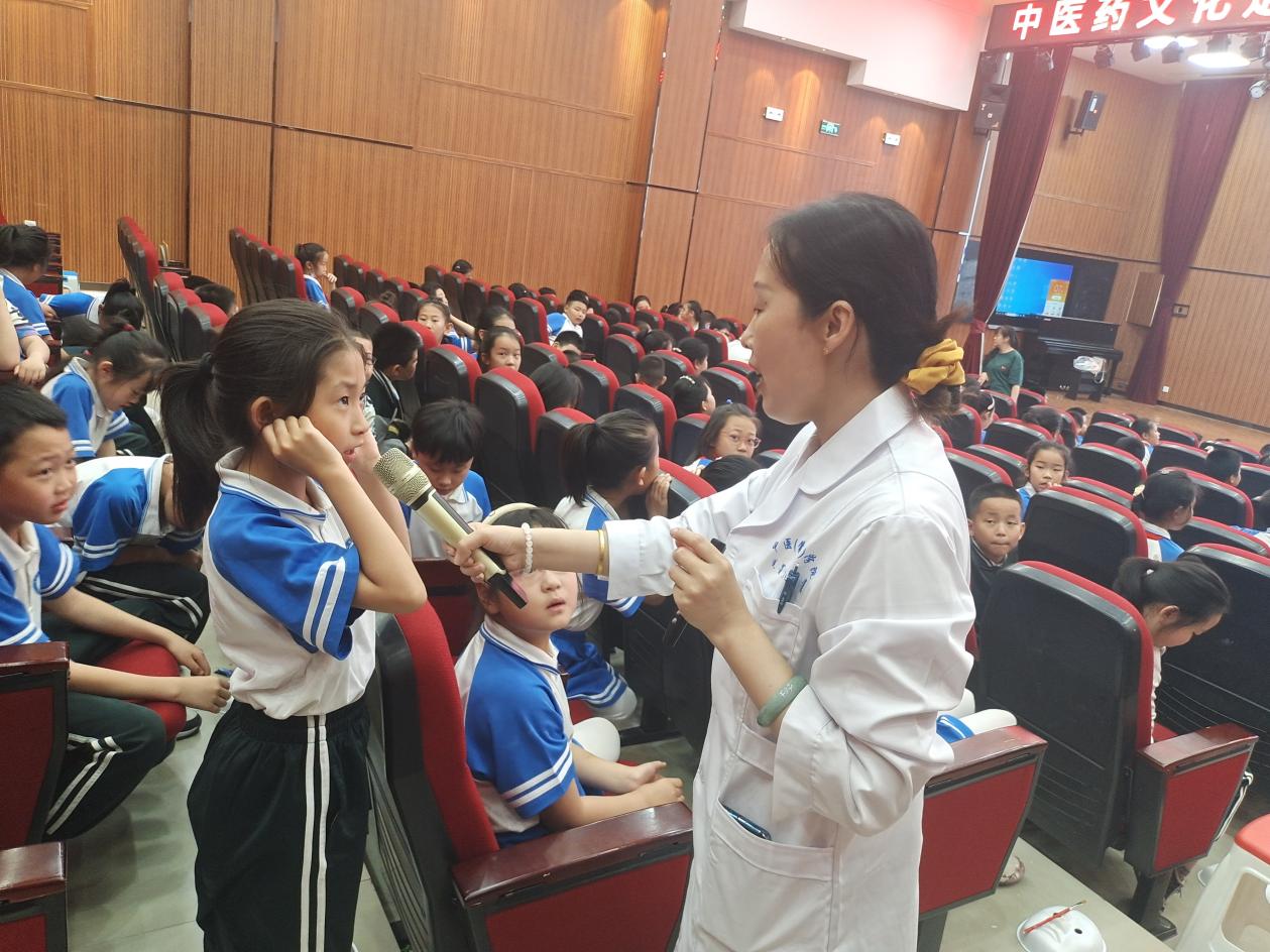 活动中,中医(蒙医)学院副教授孙琪老师以“清肺排毒汤”、“胸外按压”、“人工呼吸”等为例,科普了中医药在中华民族繁衍生息中起到了重要作用,引导小学生们坚定文化自信;接着,以“画脸谱”的方式,讲授眼保健操中出现的腧穴,使得小学生们能正确掌握穴位定位,并正确操作。最后,活动随着小学生们欢快、准确有序的操作中结束。