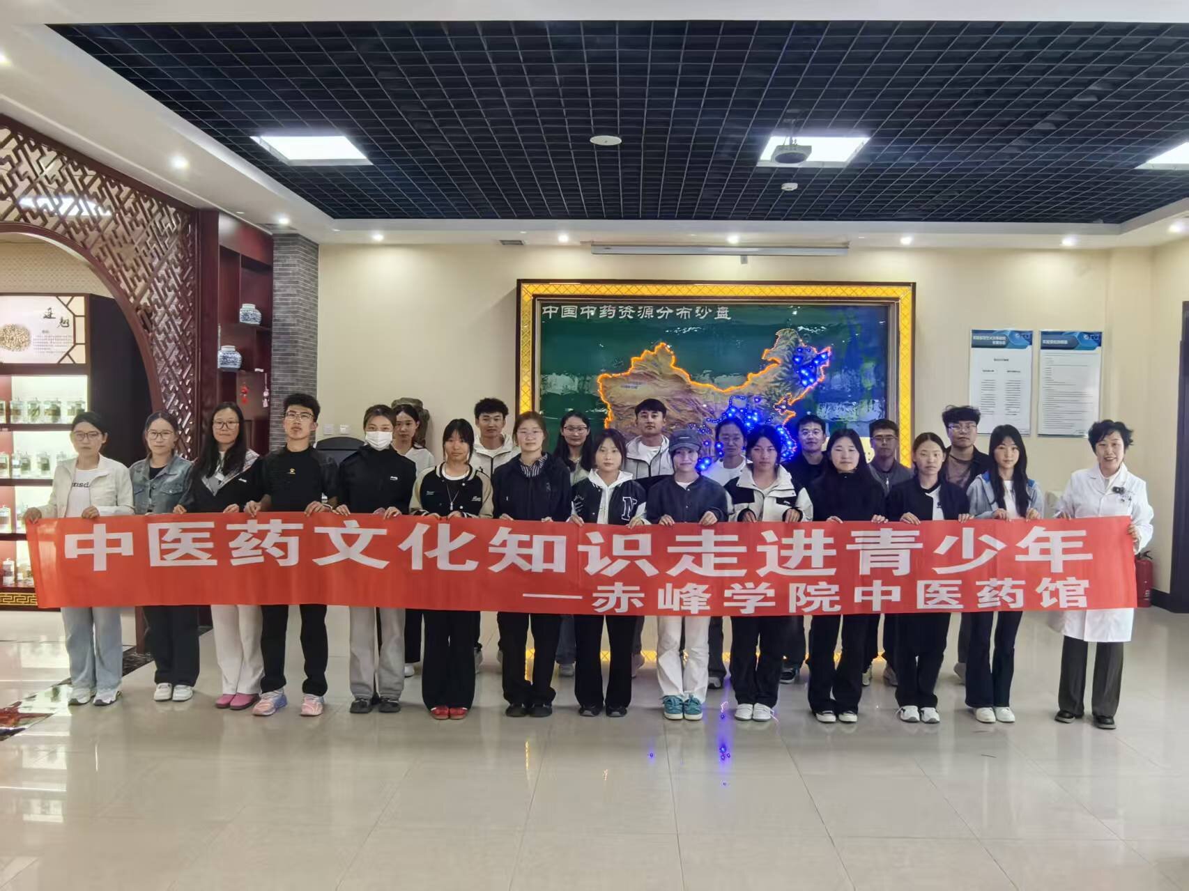 9月19日,beat365官方网站中医药馆迎来了赤峰市红山区第二十一小学50余人的参观。