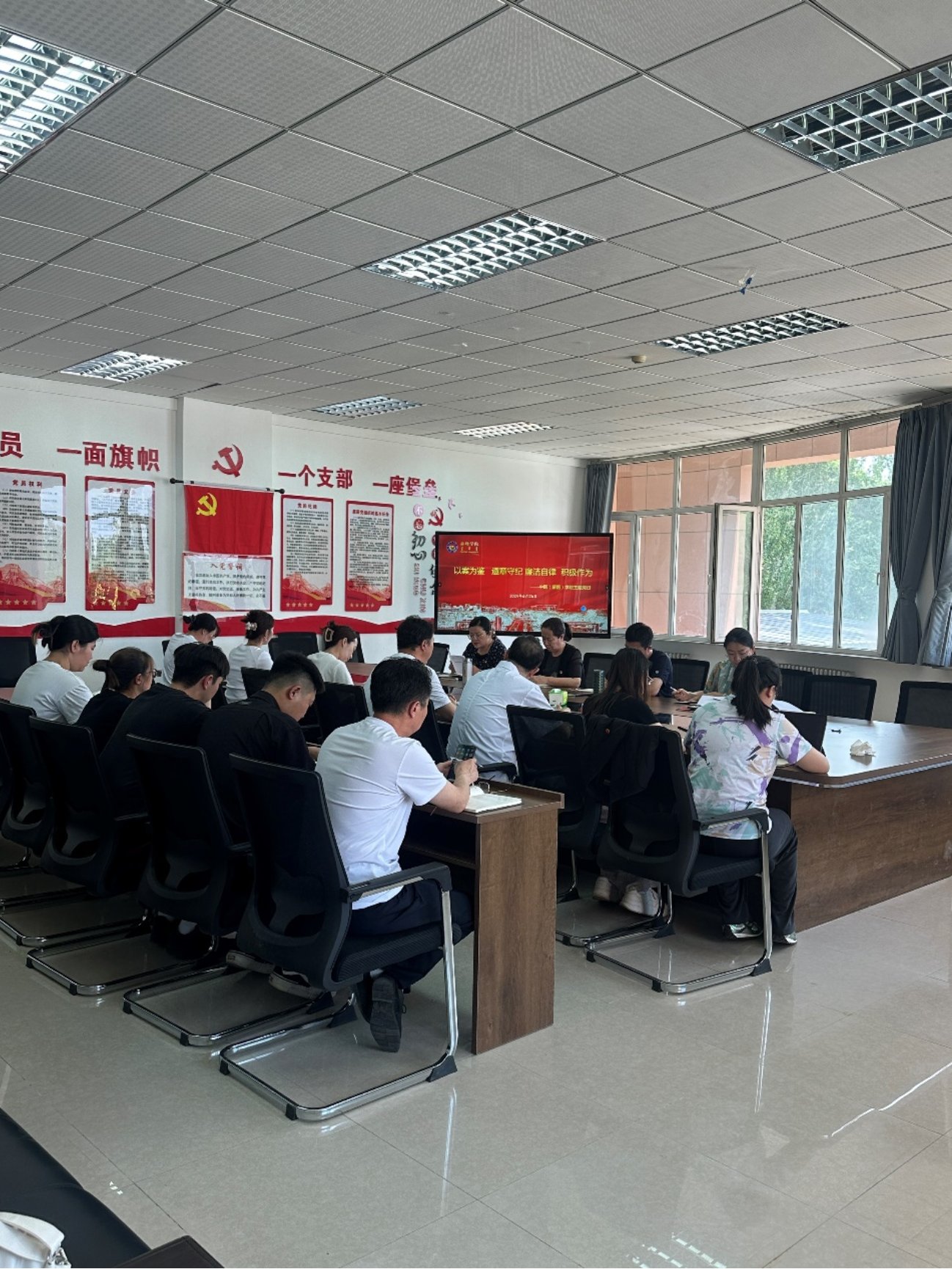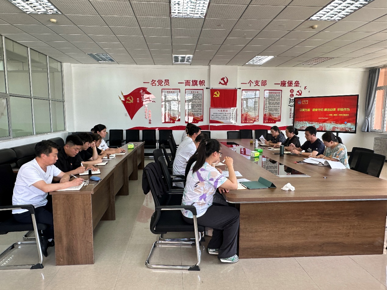 6月26日下午,中医(蒙医)学院党总支在崇仁楼208会议室开展“以案为鉴 遵章守纪 廉洁自律 积极作为”主题党日活动。全体师生党员参加,活动由党总支副书记朱蕾主持。