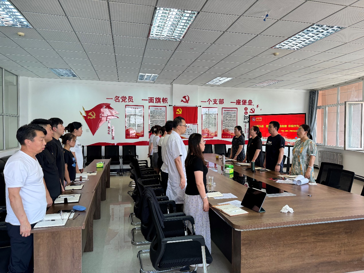 活动开始,党总支副书记朱蕾领学了赤峰市纪委监委编写的违反党的六大纪律及违反中央八项规定七个方面部分典型案例;副院长孙明子带领大家回顾了《中国共产党章程》第一章“党员的权利和义务”等内容;教务办副主任丁新玲作表态发言,表达了要遵章守纪,担当尽责的决心和信心;副院长(主持行政工作)吴宝领誓,与会人员共同重温入党誓词。最后,党总支书记孙伟勤作总结,希望各位党员同志在工作和生活中要坚持学好党章、坚持自律自省、坚持担当作为,以典型案例为警示,吸取教训,引以为戒,筑牢思想防线,增强拒腐防变的免疫力。教师党员要坚定理想信念,加强党性锻炼和党性修养,争做“四有好老师”,学生党员要胸怀理想、志存高远,为实现中华民族伟大复兴的中国梦贡献青春力量。