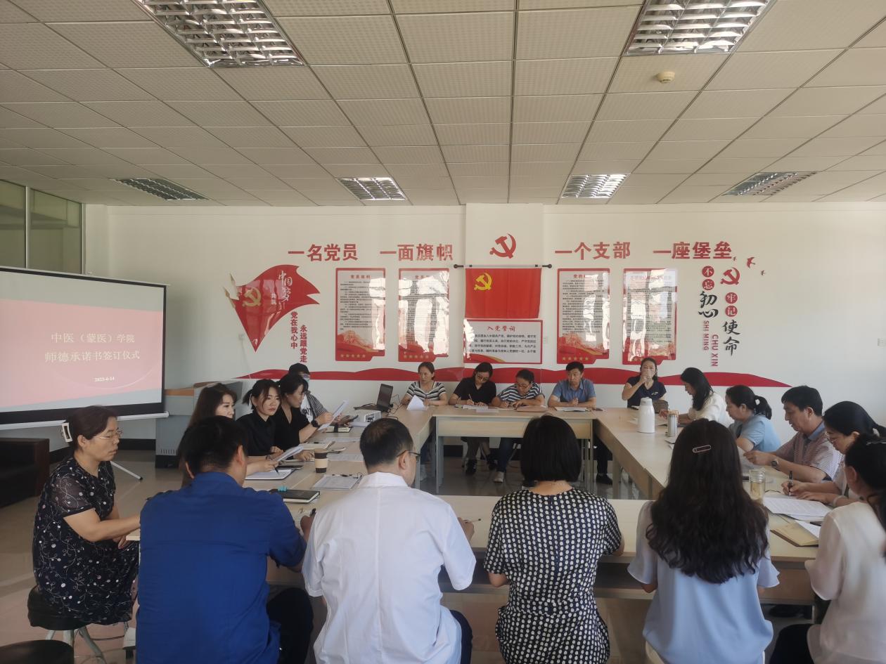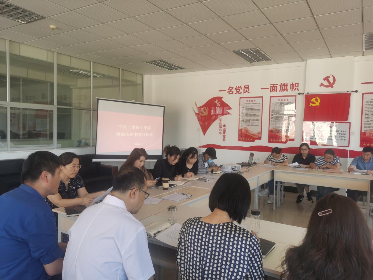 6月14日下午,中医(蒙医)学院在崇仁楼208会议室组织举办师德承诺书签订仪式。中医(蒙医)学院全体教职工参加,党总支书记孙伟勤主持会议。