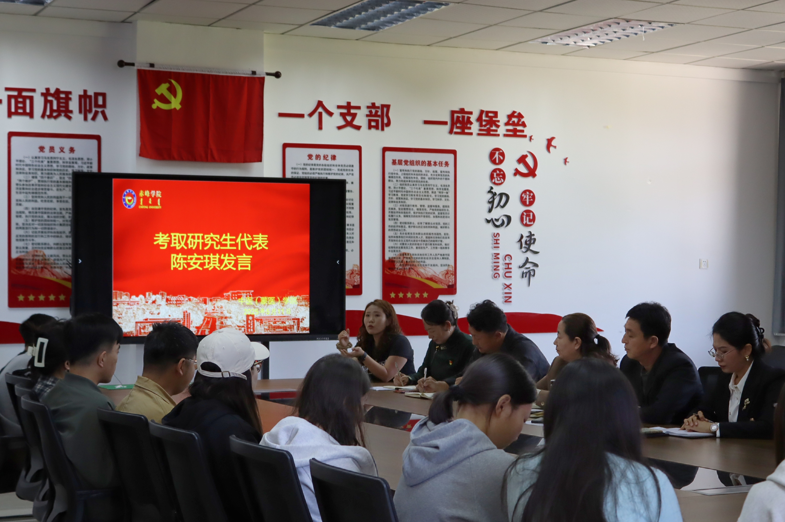 5月11日,中医(蒙医)学院在崇仁楼208室举办“研途筑梦、医路同行”2025年考研经验分享交流会。党总支书记孙伟勤、院长吴宝、团学办副主任白云峰、教师代表包玛努以及有报考研究生意向的2021级蒙医学专业40余名学生参加。分享交流会由娜仁老师主持。
