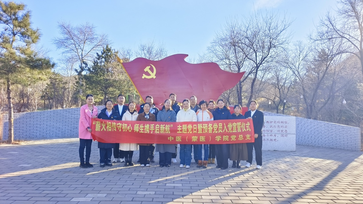 11月19日,中医(蒙医)学院“薪火相传守初心师生携手启新航”主题党日暨预备党员入党宣誓仪式在玉龙川研学基地举行。活动由党总支组织委员娜仁同志主持,全体师生党员参加。