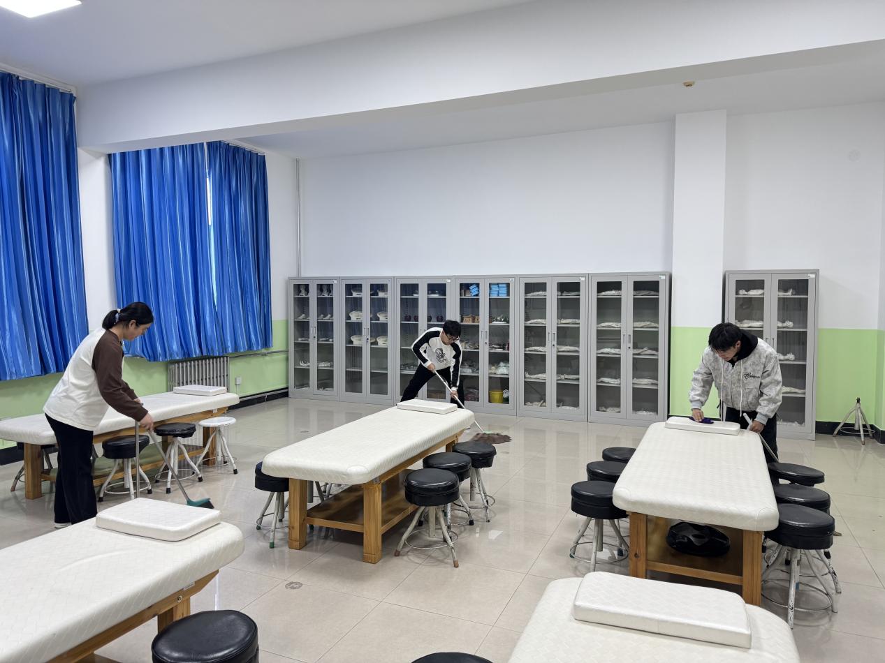 志愿者们按照《实验室卫生管理规范》要求,对中医药馆、蒙医传统疗术实验室、中蒙医虚拟仿真实验室等14个专业实验室展开深度清洁。在四个小时的志愿服务中,志愿者们充分发扬"螺丝钉精神",运用专业所学开展科学清洁,志愿者们仔细核对每件传统医疗器具的养护要求,确保文化传承载体的妥善保管,实验室环境焕然一新,得到实验室老师的高度评价。