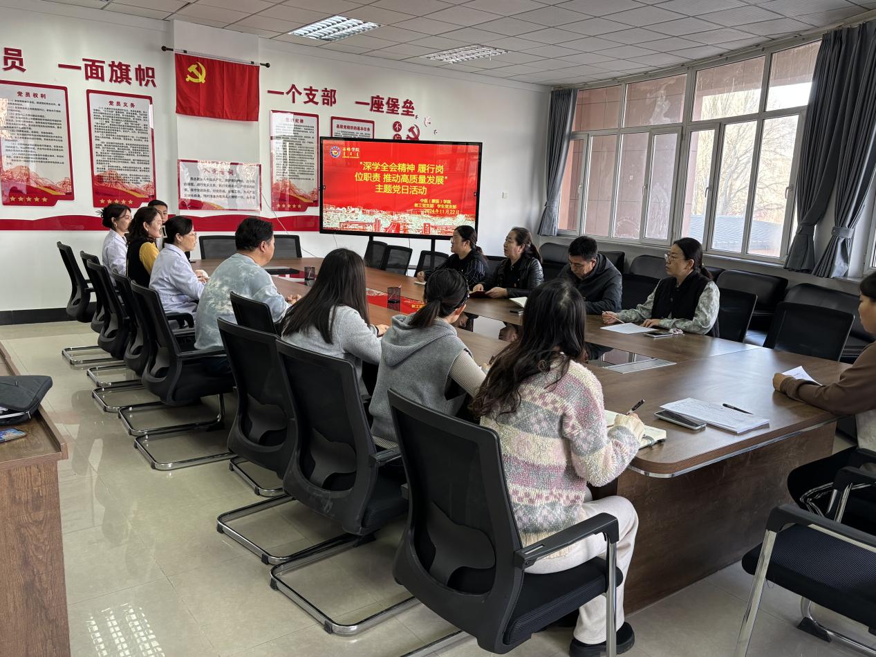 活动中,学生党支部书记娜仁传达学校相关工作提示要求、领学《中国共产党不合格党员组织处置办法》,教工党支部书记周红伟领学《中共中央关于进一步全面深化改革、推进中国式现代化的决定》,教师党员和学生党员代表分别就学习全会精神的心得体会进行研讨。党总支书记孙伟勤强调,学习好贯彻好二十届三中全会精神是当前和今后一个时期全党全国的一项重大政治任务,全体党员要深入学习领会全会精神,深刻领会和把握进一步全面深化改革的主题、重大原则、重大举措、根本保证,切实将会议精神贯彻到日常工作学习生活中。