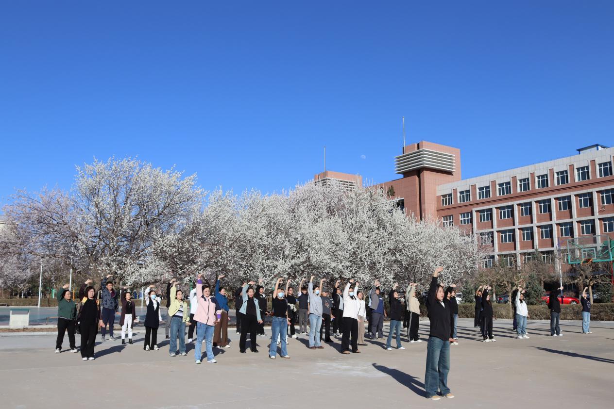 从“双手托天理三焦”到“摇头摆尾去心火”,一招一式舒展流畅,既彰显中医“阴阳调和”的养生精髓,又融入蒙医“三根平衡”的健康智慧。阳光下,青年学子与教师同频共练的身影,成为医学楼前一道独特的风景。