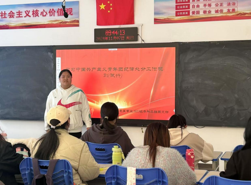 通过深度学习“学习中国共产主义青年团纪律处分工作规则(试行)”同学们明白了它有助于团员增强纪律意识,明确行为准则,使团员清楚认识到什么是可为和不可为,规范自身在团内和社会中的行动。这有利于保持共青团组织的先进性和纯洁性,让团组织能更有效地履行使命。同时能促进团组织内部良好风气的形成,增强凝聚力,保证团组织各项工作和活动有序、高质量开展,保障共青团在青年群体中更好地发挥引领作用。