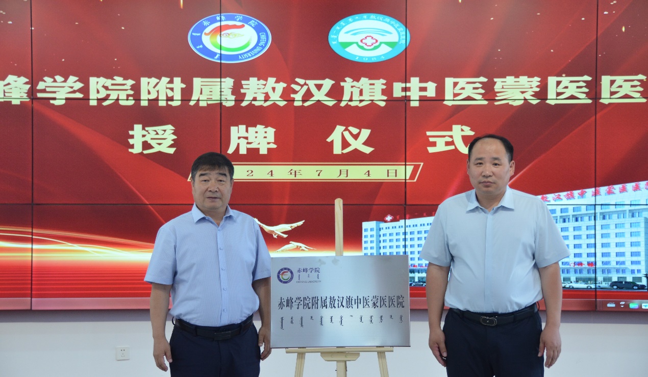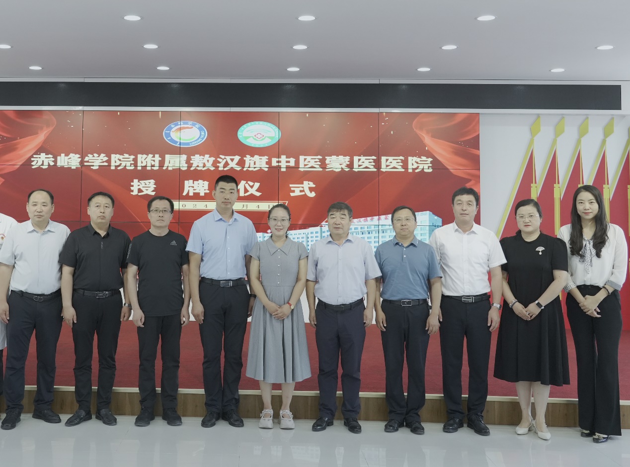 7月4日,由杨占君副校长带队,教务处、医学部、中医(蒙医)学院相关负责同志一行5人赴敖汉旗参加“beat365官方网站附属敖汉旗中医蒙医医院”挂牌仪式。敖汉旗副旗长宝佳林、敖汉旗卫健委副主任王清、敖汉旗中医蒙医医院领导班子成员及相关部门负责人参加了仪式。