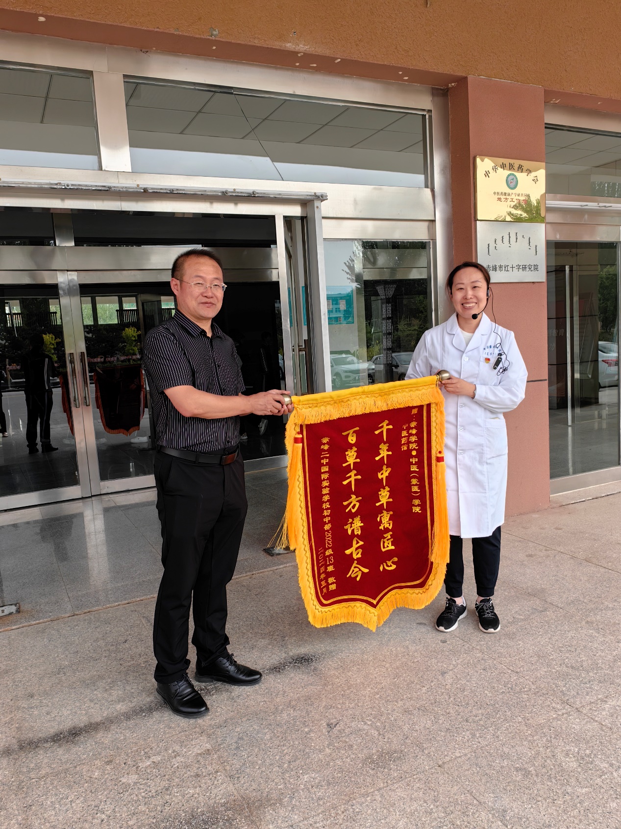 活动中,中医药馆负责人、中医(蒙医)学院副教授孙琪老师及讲解志愿者们向学生们介绍了中药在全国分布情况,科普了中医专有名词——道地药材的意义,并以所处地区——赤峰为例,重点介绍了赤峰地区的道地药材,讲述了古代名医的事迹,带领全体同学们亲手制作了端午香囊。活动中,来自二中国际实验学校的师生们认真聆听,积极互动交流,并就感兴趣的中医话题进行提问,讲解者们耐心细致地一一回答。活动结束后,赤峰二中国际实验学校为三个基地都赠送了锦旗。
