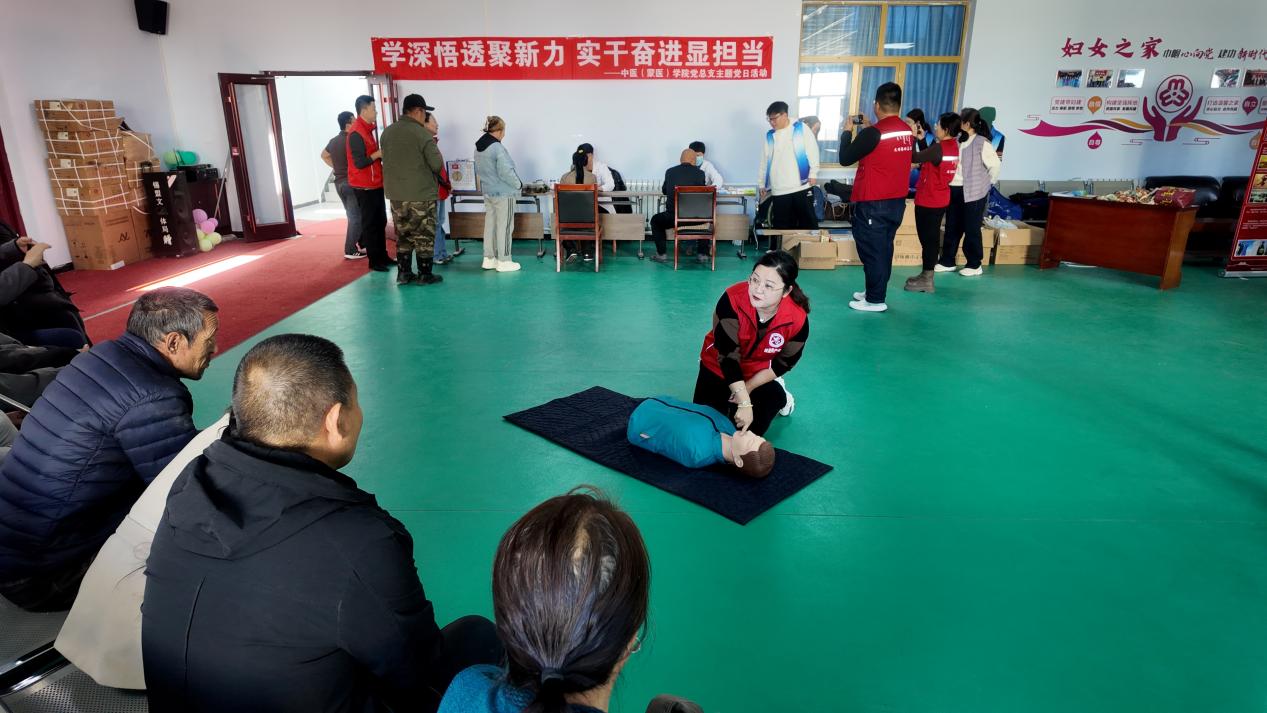 活动由两个部分组成,9日下午全体人员参观了锡林郭勒盟铸牢中华民族共同体意识实践基地,沿着书记2014年考察路线,感总书记对内蒙古各族人民的关心与厚爱,在蒙古马精神展厅、党员中心户展馆和守望相助铸牢中华民族共同体意识展厅,深刻领悟了习近平总书记在民族团结进步表彰大会上的讲话精神,从锡林浩特市民族团结进步创建历程和基层党建工作中学到了宝贵经验。10日上午,的师生志愿者与巴彦宝拉格苏木六十余名各族群众亲切交流,开展了建立健康手册、蒙医疗术、中医号脉、肩颈部按摩诊疗活动,为群众解除病痛;为等候义诊的群众详细讲解并示范心脏骤停最佳急救时间和正确心肺复苏操作要求和步骤同时,随行师生与当地志愿者将同学们制作的具有芳香避秽、净化空气等功效的香囊和康知识卡片送给有需要的群众