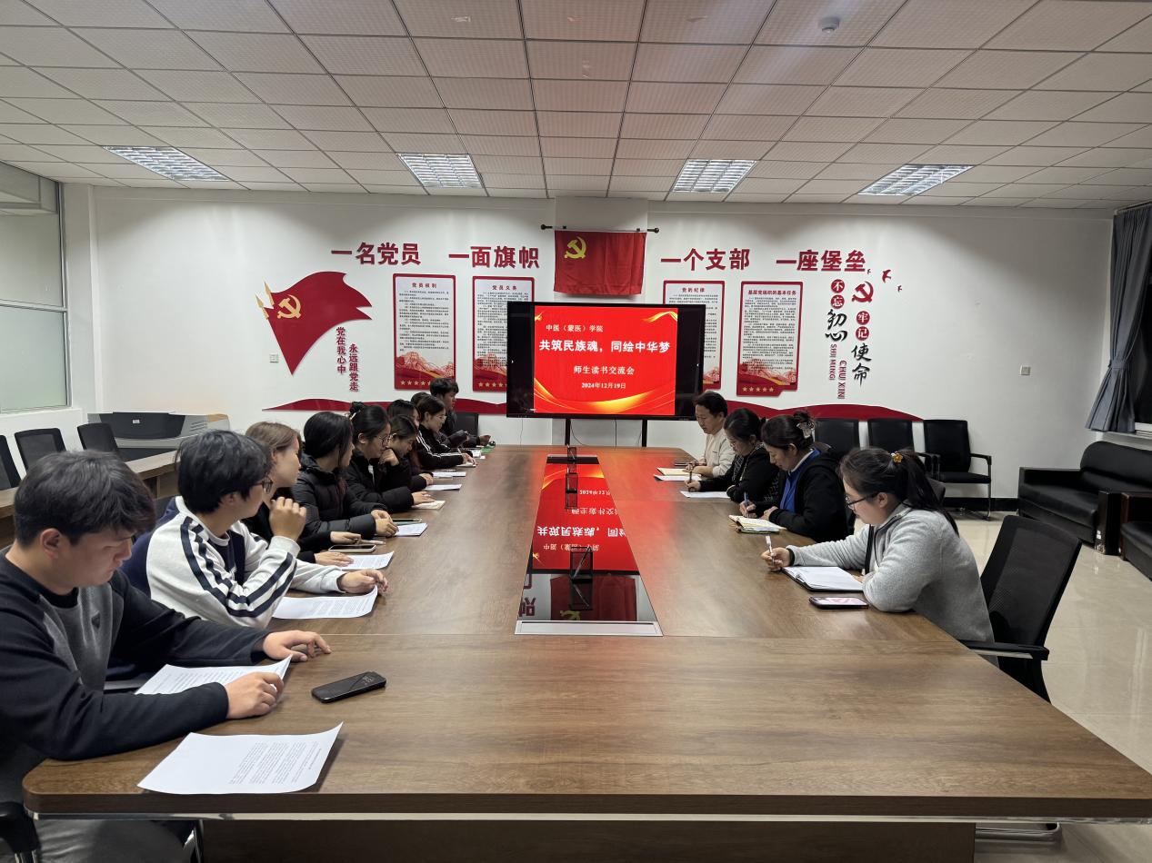12月19日,中医(蒙医)学院组织开展“共筑民族魂,同绘中华梦”师生读书交流活动。师生共读关于民族团结的相关书籍并交流阅读感悟。